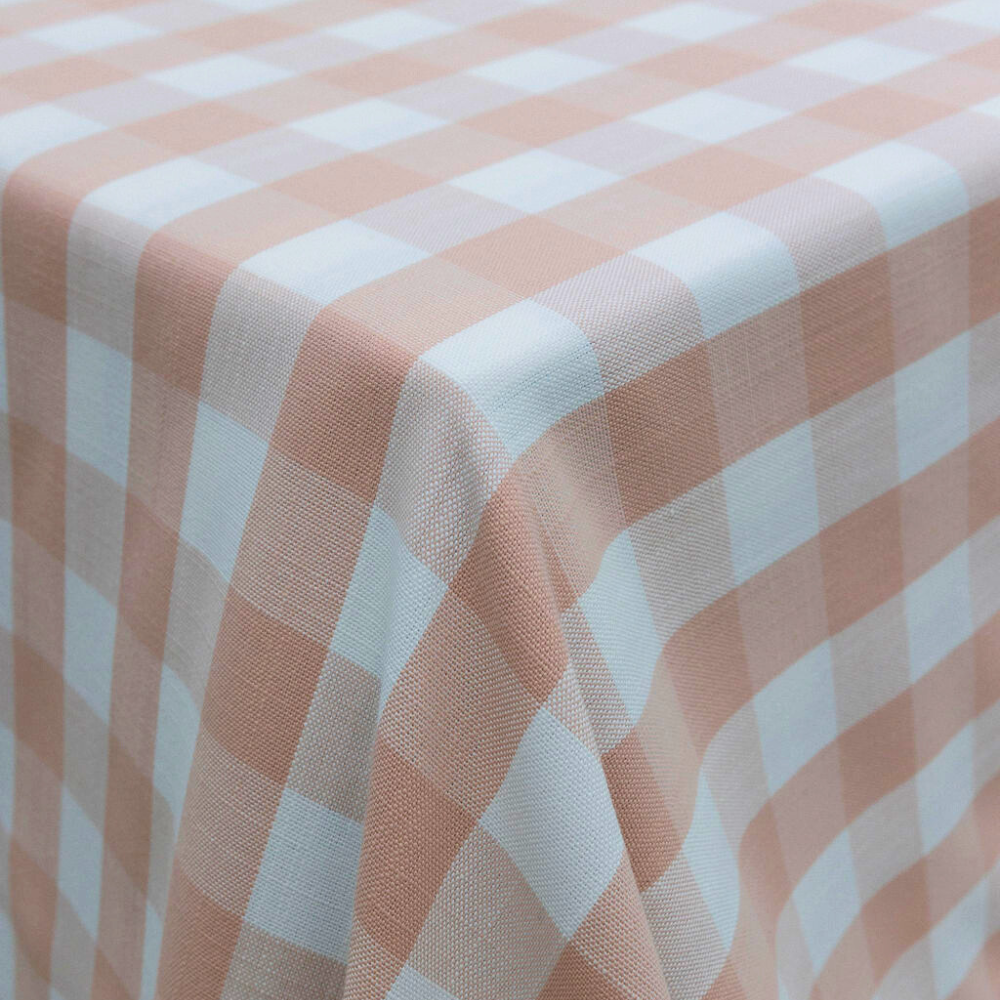 The Blush Pink Checkers linen showcases a bold buffalo check pattern in blush pink and white, crafted from premium yarn-dyed fabric for rich color and texture. This oversized check design is perfect for farmhouse-style weddings, picnic-inspired events, and modern rustic table top designs. A go-to rental table linen for creating warm, inviting, and stylish settings with a touch of charm.