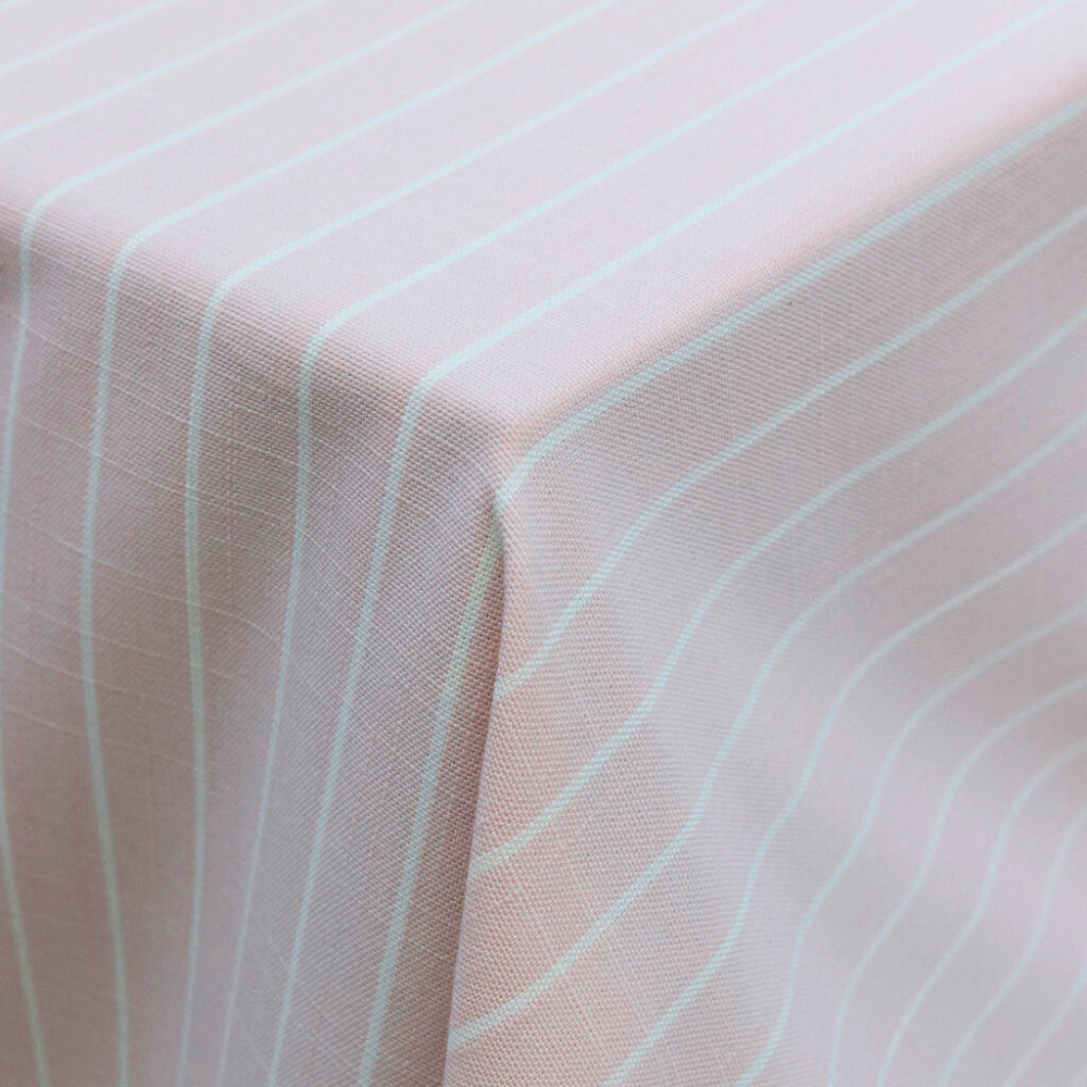 The Blush Pink Rhett linen adds a soft, romantic touch to any event rental design, featuring delicate white stripes on a blush-toned woven fabric. Perfect for weddings, bridal showers, or elegant garden parties, this striped table linen brings a fresh, feminine look to your tabletop décor. Its subtle pattern and refined color make it a go-to choice for event planners and designers looking to elevate tablescapes with understated charm.